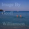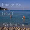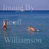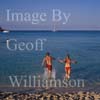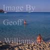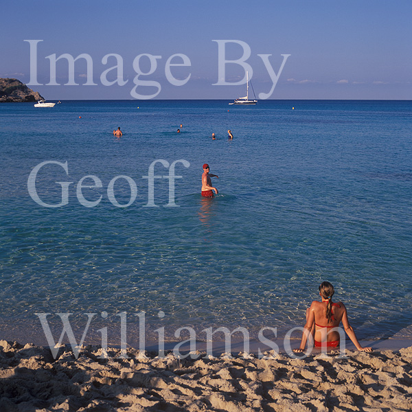 Scene at Cala Agulla - young couple enjoying the sea - idyllic sandy bay close to Cala Ratjada, North East Mallorca, Balearic Islands, Spain. 9th September 2007. Verbal Model Release.
