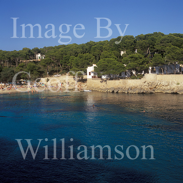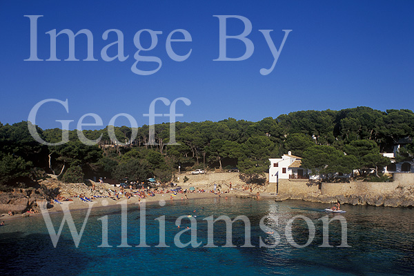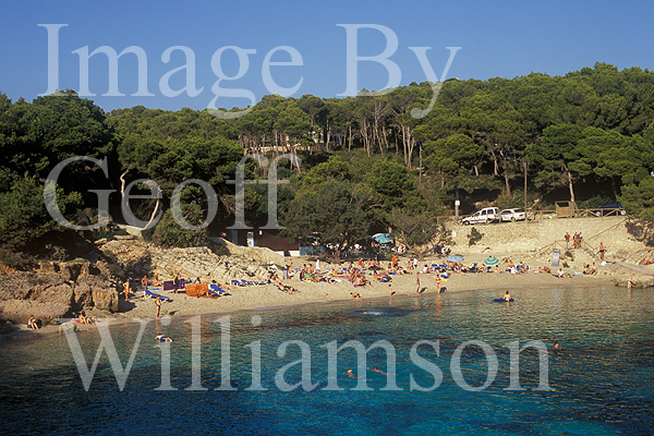 Cala Rajada ( Ratjada ) scene - small popular cala/bay with swimmers and sandy beach - North of Cala Rajada / Ratjada harbour - North East Mallorca, Balearic Islands, Spain. 7th October 2007.