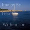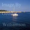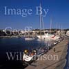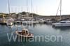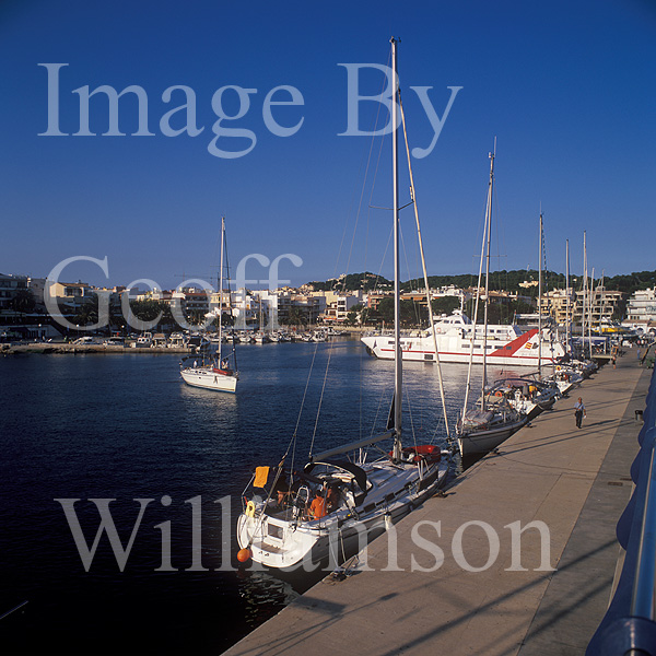 Cala Rajada ( Ratjada ) harbour with sailing yachts moored alongside breakwater + yacht arriving - North East Mallorca, Balearic Islands, Spain. 7th October 2007.