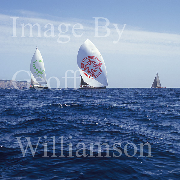Superyacht Cup Palma 2007 - Super Sailing Yachts under way ( with spinnakers ) in the Bay of Palma - Palma de Mallorca, Balearic Islands, Spain. 17th June 2007.